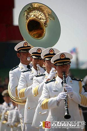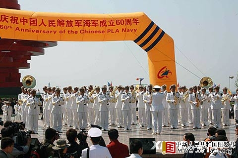 4月21日,中国海军北海舰队军乐团在表演。新华社记者李刚摄