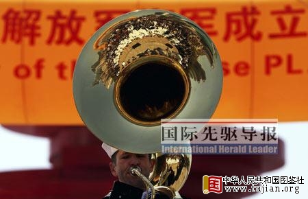 4月21日,青岛港,一位美国水兵在演奏乐曲,庆祝中国海军建军60周年。路透社 copyright 中华人民共和国图鉴社