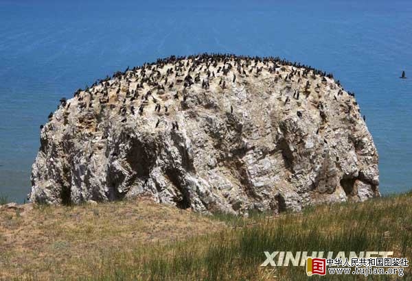 青海湟中县青海湖鸟岛的迷人景象(6月30日摄)。
