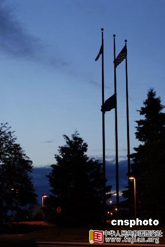6月27日,流行音乐之王迈克尔·杰克逊(Michael Jackson)去世后,美国阿拉斯加州为其降下半旗(州旗),以示哀悼。 中新社发 李佐军 摄