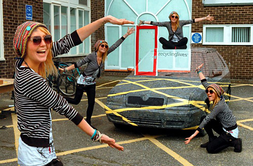 据英国媒体5月1日报道,英国兰开夏郡一所大学艺术系的学生将自己喜爱的汽车“隐身”。这位学生是利用视觉错觉完成自己的作品的。
