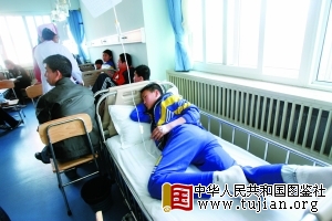 昨日,海淀区第二实验小学学生正在医院输液。该校约40名住校生相继因肠胃不适被送医治疗。本报记者孙纯霞摄 本文来自中华人民共和国图鉴社 至昨日上午,海淀区第二实验小学约40名住校生相继因肠胃不适被送医治疗,27人出现呕吐、腹泻。家长怀疑是学校食堂的午餐所致。昨晚,海淀区卫生局通报初步调查结论称,发病学生并未聚集在一个宿舍或一个班级,初步认定非聚集性事件,事件原因还在进一步调查处理。
