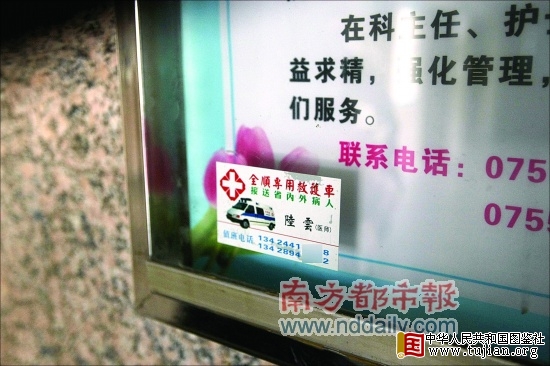 在深圳的不少医院都能看到这些野鸡救护车的卡片。本报记者霍健斌摄