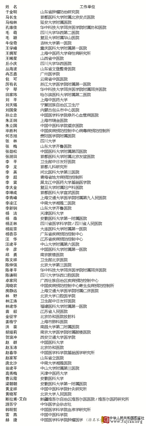 2007~2008年度卫生部有突出贡献中青年专家名单