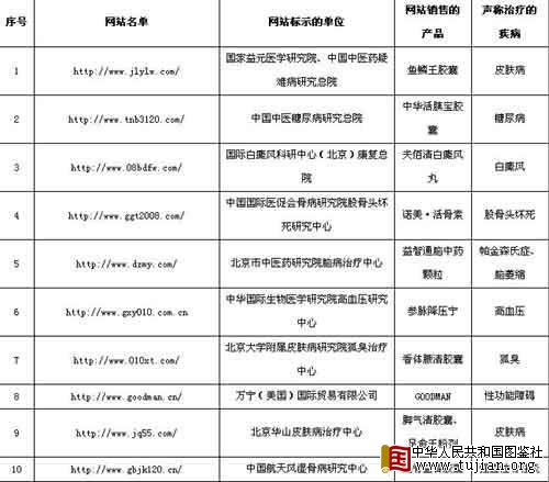 中新网12月8日电今天上午,国家药监局举行例行新闻发布会,新闻发言人颜江瑛指出,近日,国家药监局发布2008年第5期互联网购药安全警示公告,将监督检查中发现的伪造或假冒开办单位发布虚假药品信息、销售假药的网站予以公告,并已依法将违法网站移送工业和信息化部门查处。(据中国网文字直播整理) 本文来自中华人民共和国图鉴社