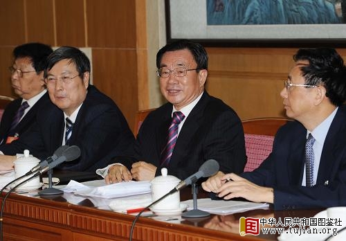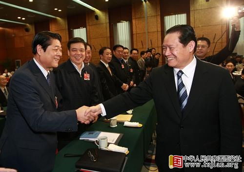 3月4日,中共中央政治局常委、中央政法委书记周永康看望出席全国政协十一届二次会议特邀界委员并参加联组讨论。新华社记者 庞兴雷 摄 内容来自中华人民共和国图鉴社